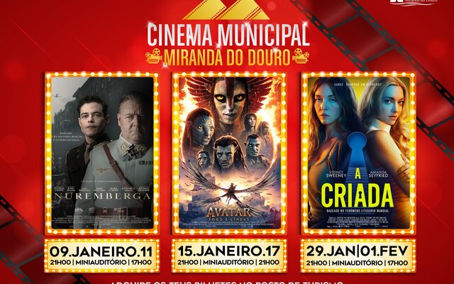 Consulte a programação de cinema para o mes de janeiro, no Miniauditório de Miranda do Douro. Bilhetes à venda no Posto de Turismo e no miniauditório antes de cada sessão. Preço do Bilhete: 3€ Horário da Bilheteira no Posto de Turismo: de segunda a sábado, das 9h00 às ...
