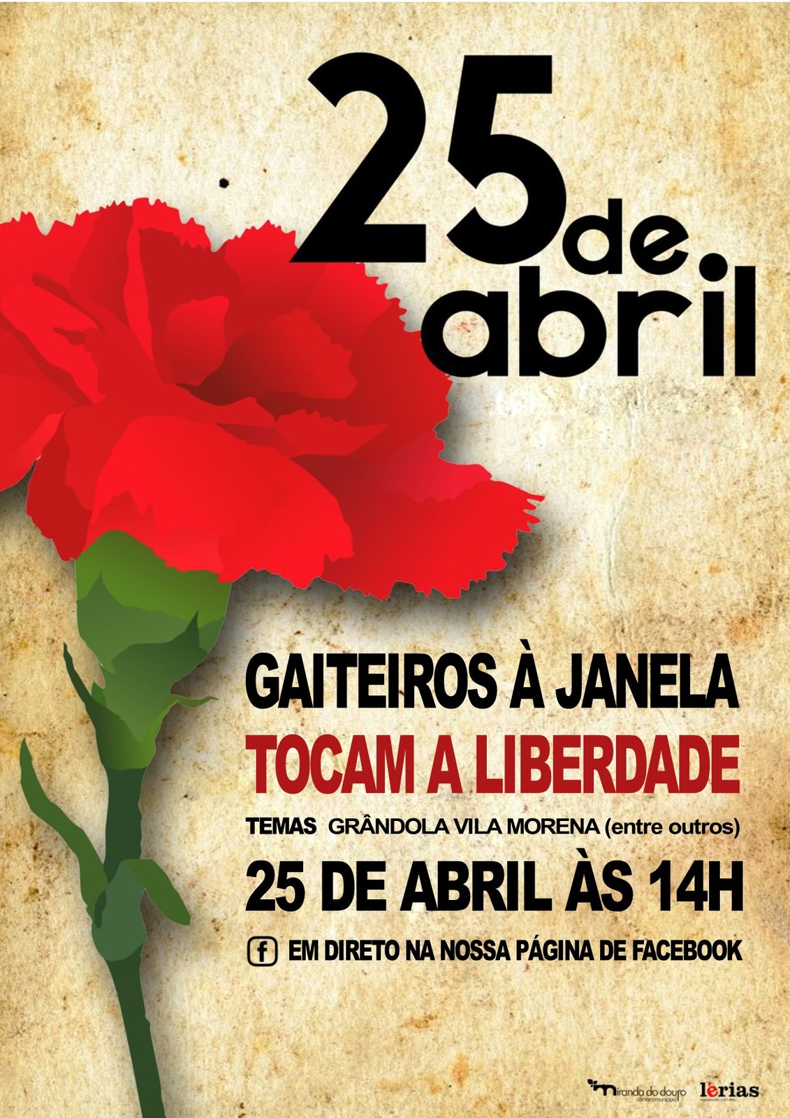 O Municipio Miranda do Douro associa-se desta forma às comemorações do 25 de Abril de 2020, convidando os Gaiteiros da Lérias Associação Cultural, a tocar Grândola Vila Morena (entre outros temas) à janela, neste sábado, 25 de Abril, às 14 horas.