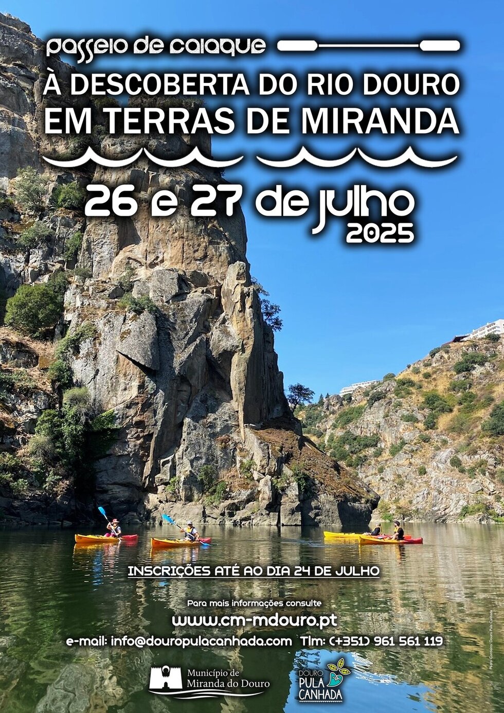 Nos dias 26 e 27 de julho vamos abraçar a riqueza natural e paisagística das Arribas do Douro, em Terras de Miranda, com dois passeios de caiaque, num programa de canoagem organizado pela DOURO PULA CANHADA e pelo MUNICÍPIO DE MIRANDA DO DOURO.