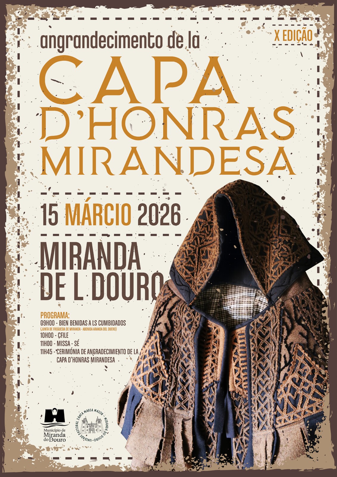 A Câmara de Miranda do Douro, promove no próximo dia 15 de março, a "X Edição da Exaltação da Capa de d´Honras Mirandesa", uma peça única do vestuário tradicional português e, ainda em uso no concelho mirandês.