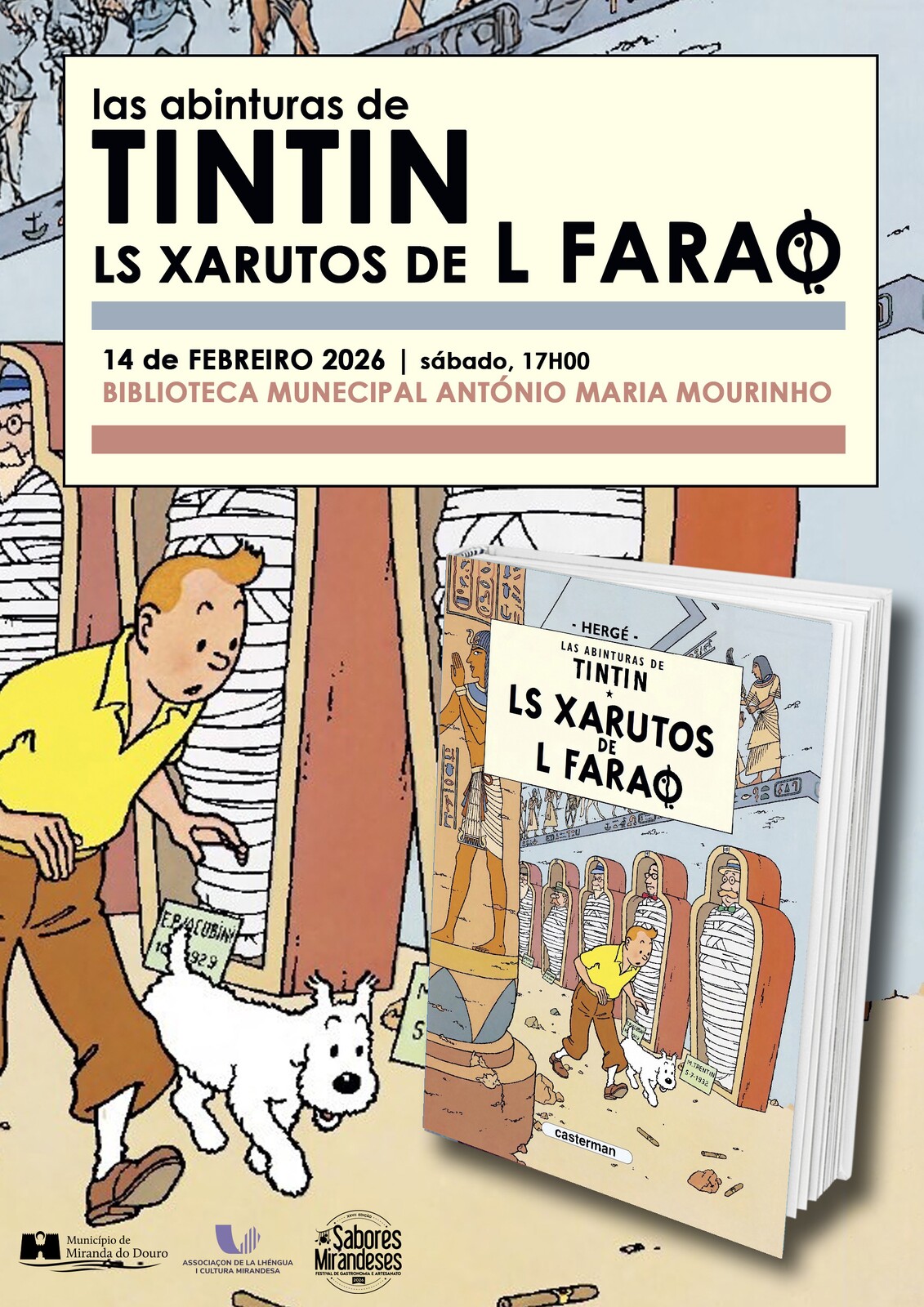 Ls Xarutos de l Faraó son la purmeira abintura de TINTIN falada an mirandés i bai a ser apersentada no sábado que ben, die 14, a las cinco de la tarde, na Biblioteca António Maria Mourinho an Miranda. Todos ls partecipantes nesta cuonta fálan la Lhéngua que stá na nuossa raíç: Tintin, Rastapopoulos, Dupond i Dupond, Oulibeira de la Figueira… i até Milú lhadra an mirandés.