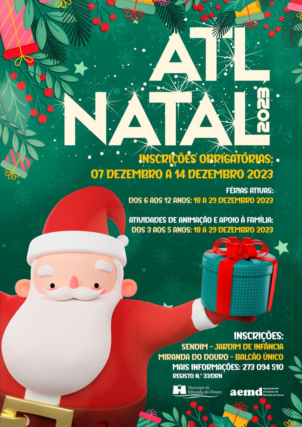 De 18 a 29 de dezembro, a Câmara Municipal de Miranda do Douro irá promover o ATL de Natal 2023, com diversas atividades de animação, apoio à família e férias ativas.