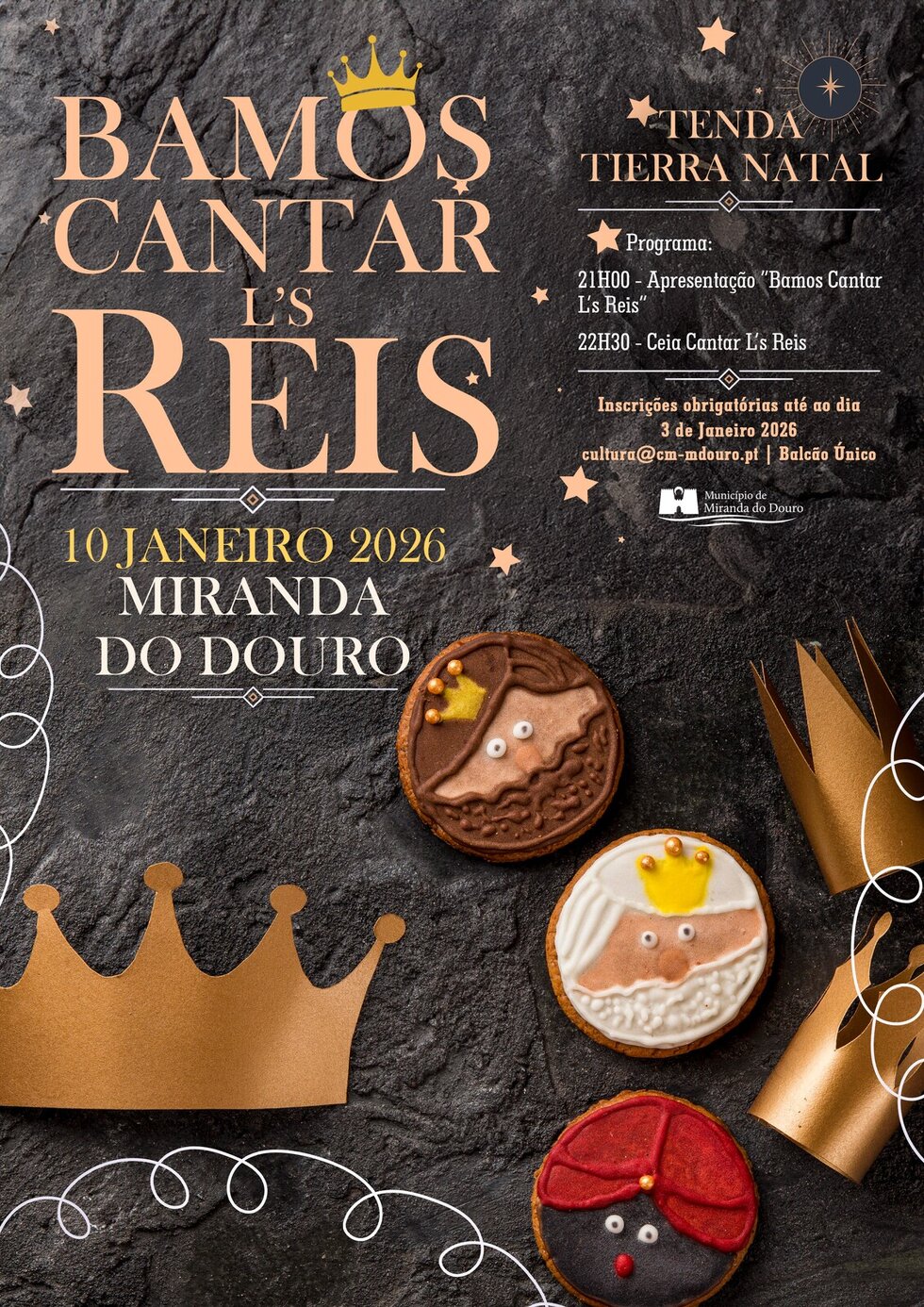 Com o intuito de manter viva a tradição do “Cantar ls Reis”, a Câmara Municipal de Miranda do Douro realiza no dia 10 de Janeiro de 2026, a partir das 21h00, no Recindo da Tierra Natal, mais um Encontro intitulado “Bamos a cantar ls Reis”.
