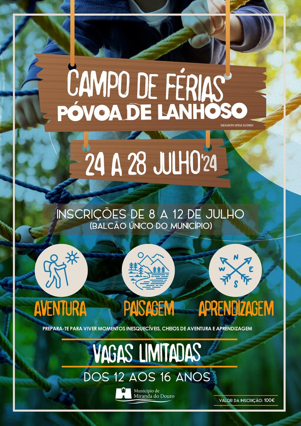 De 24 a 28 de julho de 2024, descobre o campo de férias dos teus sonhos, organizado pelo Município de Miranda do Douro, na Póvoa de Lanhoso, onde cultura, desporto e muita diversão se encontram!