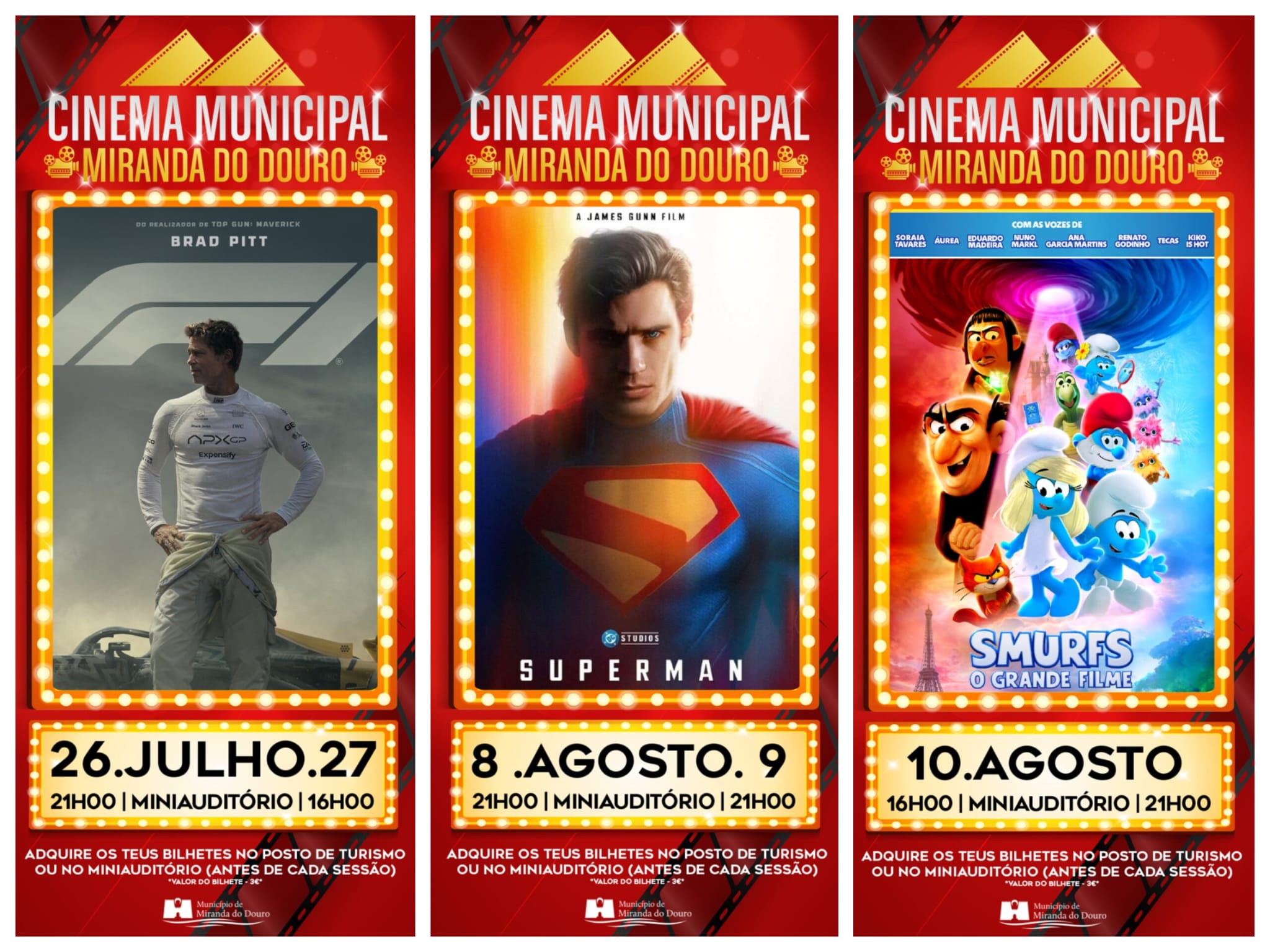 Bilhetes à venda no Posto de Turismo e no miniauditório antes de cada sessão.