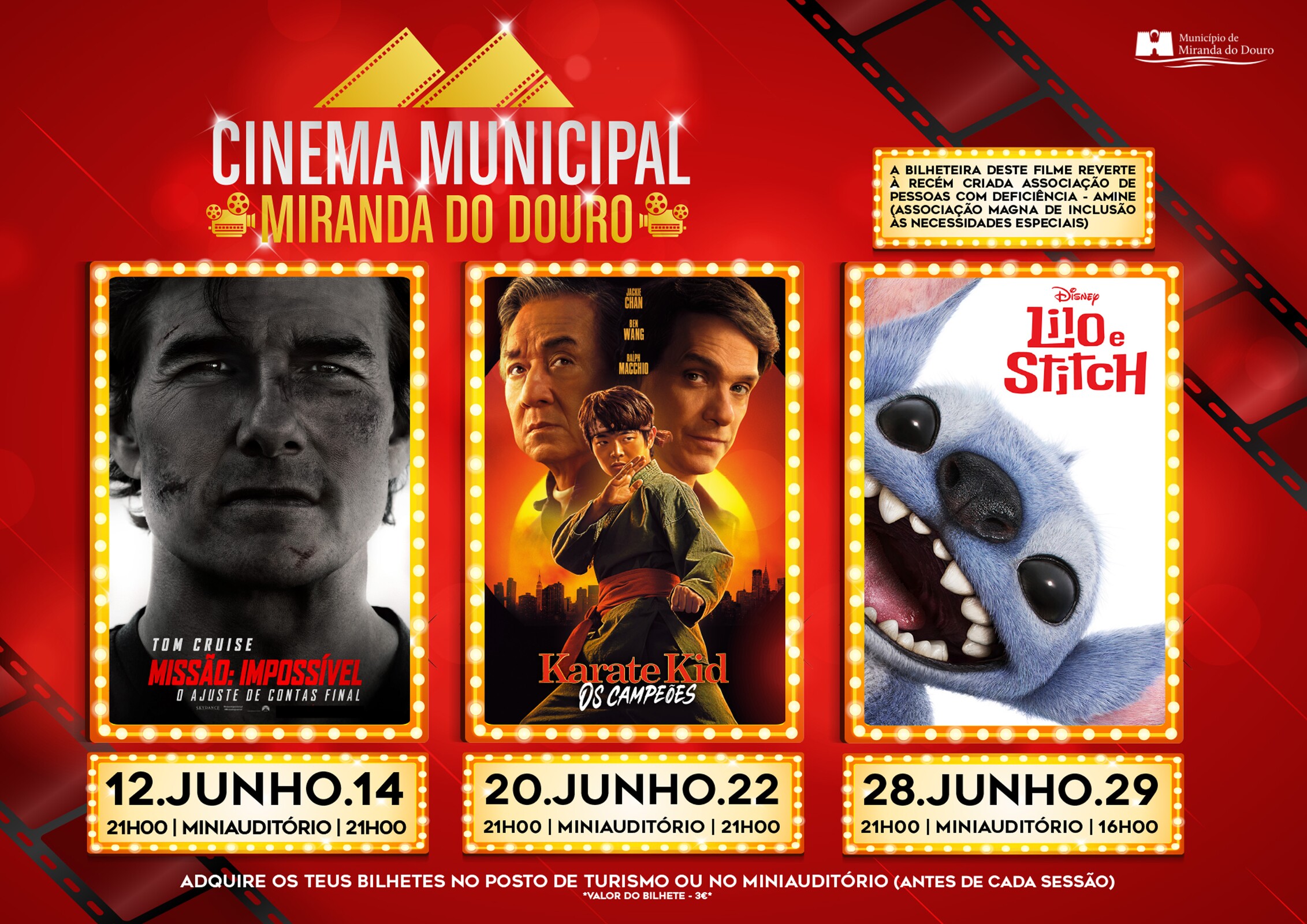 Bilhetes à venda no Posto de Turismo e no miniauditório antes de cada sessão.
