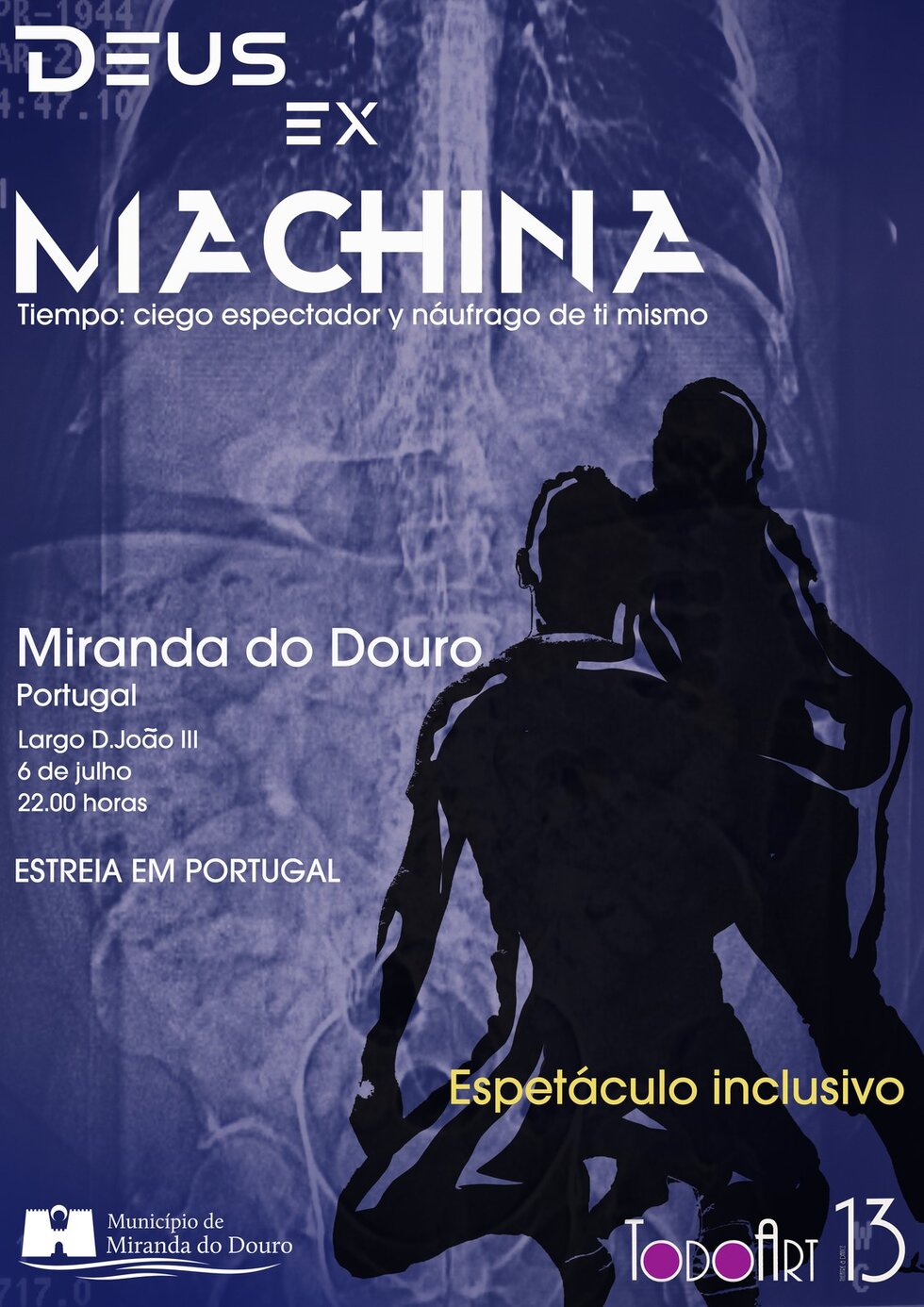 Inserido na programação das Comemorações do Dia da Cidade, o Município de Miranda do Douro irá apresentar, em estreia absoluta em Portugal, o espetáculo de teatro Deus Ex Machina, da companhia Todoart13 (España) e Indie-Viduo Company (Nova Iorque).