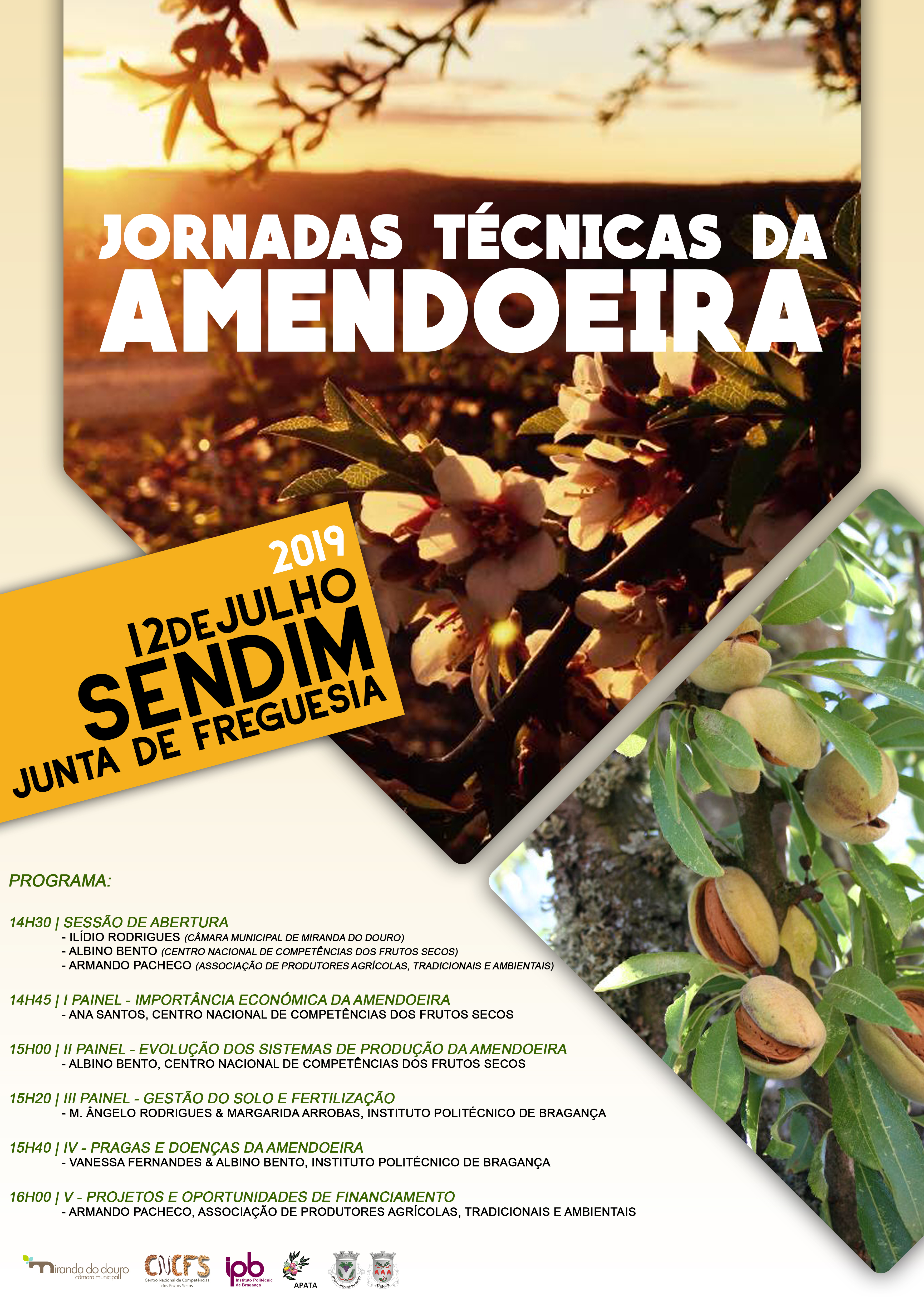 No próximo dia 12 de julho, pelas 14:30h, vão realizar-se as Jornadas Técnicas da Amendoeira, que decorrerão em Sendim, no Salão da Junta de Freguesia. Esta é uma iniciativa do Município de Miranda do Douro em colaboração com o Centro Nacional de Competências dos Frutos Secos, o Instituto Politécnico de Bragança, a Associação de Produtores Agrícolas Tradicionais e Ambientais e a Junta de Freguesia de Sendim e Atenor.