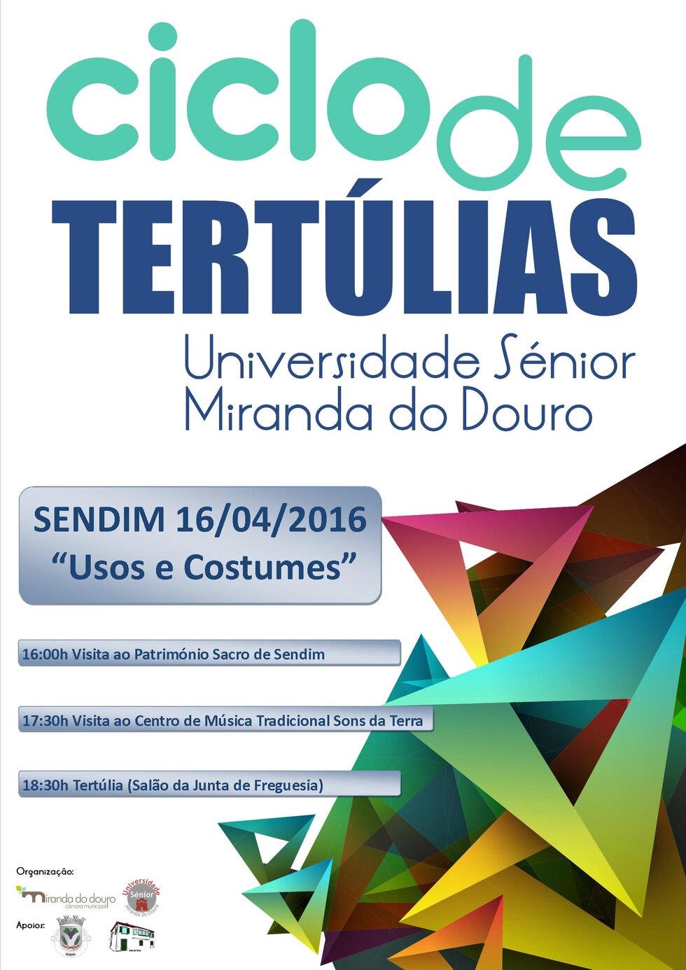 Sábado dia 16 de Abril, às 16 horas, a Universidade Sénior vai estar em Sendim numa Tertúlia, com o tema "Usos e Costumes".