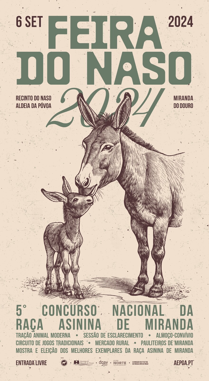O Município de Miranda do Douro, em colaboração com a AEPGA - Associação para o Estudo e Proteção do Gado Asinino, sob a orientação técnica da Direção Geral de Alimentação e Veterinária, vão levar a efeito, no próximo dia 6 de setembro, o V Concurso Nacional da Raça Asinina de Miranda, no Recinto do Santuário da Nossa Senhora do Naso, freguesia da Póvoa.