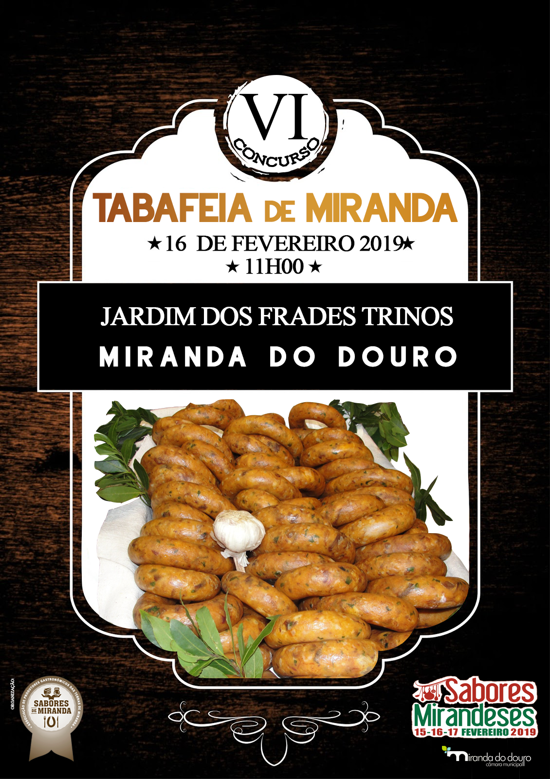 A Câmara Municipal de Miranda do Douro e a Sabores de Miranda – Associação de Produtores Gastronómicos das Terras de Miranda, promovem o VI Concurso de Tabafeia, no dia 16 de fevereiro, às 11h00, no Recinto do Jardim dos Frades Trinos, inserido no Festival de Sabores Mirandeses, que irá decorrer de 15 a 17 de fevereiro.