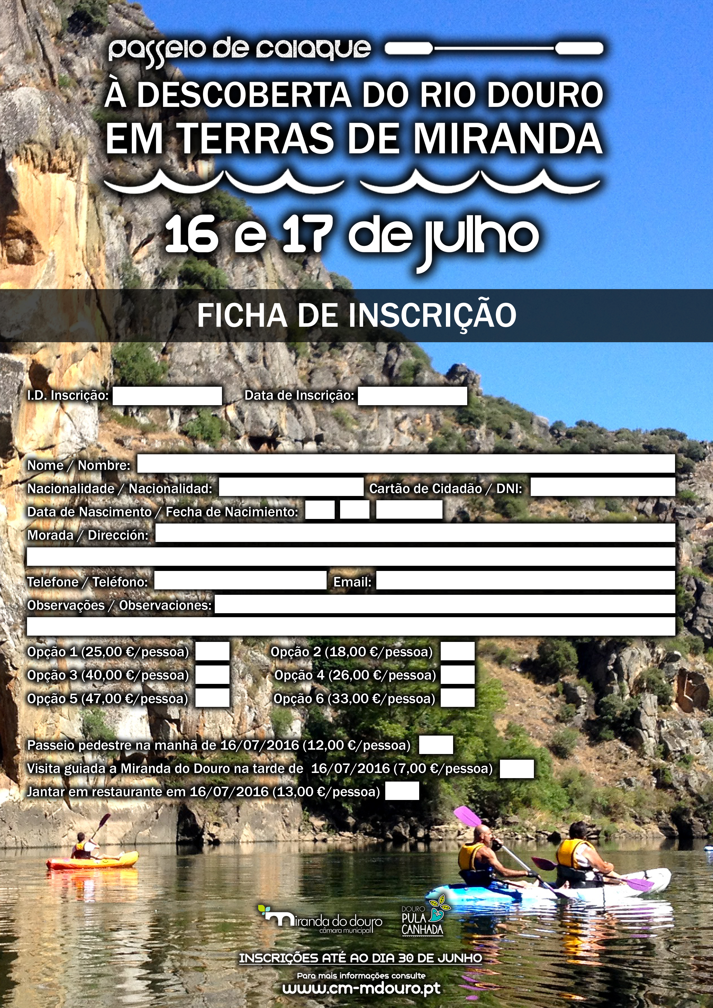 Estão abertas as inscrições, até ao dia 30 de junho, para o primeiro passeio de Caiaque “À descoberta do Rio Douro em Terra de Miranda”, a realizar em Miranda do Douro, entre os dias 16 e 17 de julho. Esta é uma atividade conjunta do município de Miranda do Douro e a Douro pula Canhada.