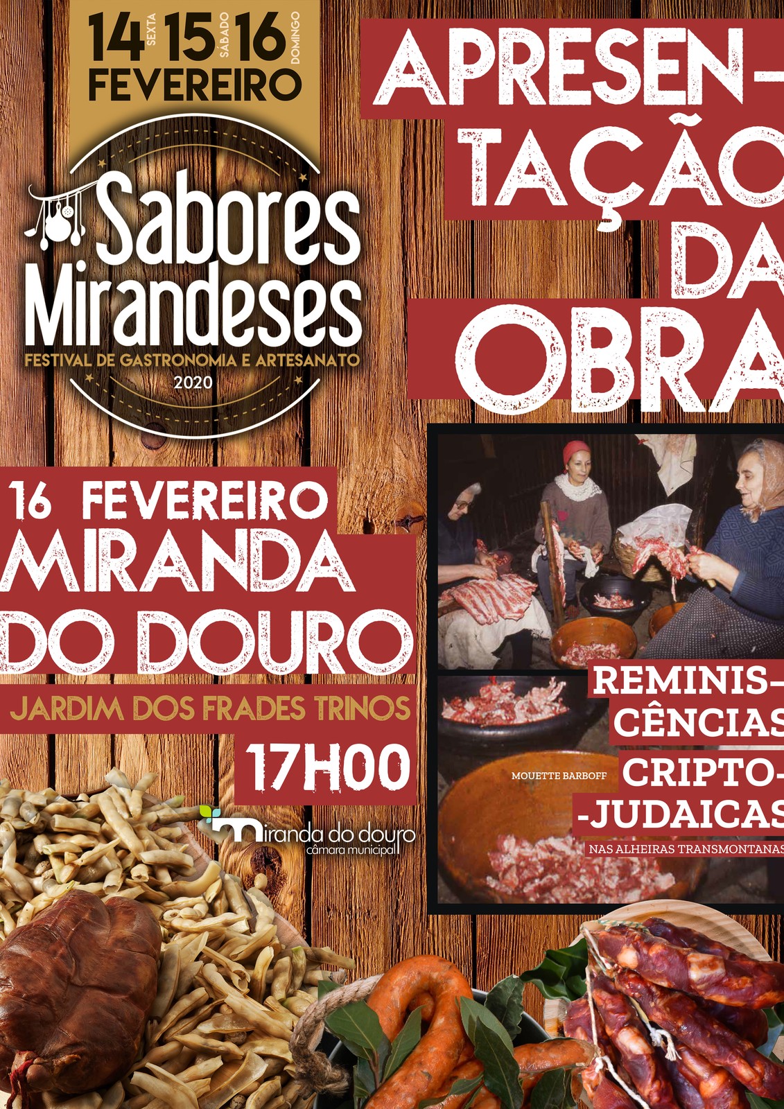 Apresentação da obra "Reminiscências Cripto-judaicas nas Alheiras Transmontanas", da autora Mouette Barboff, no dia 16 de fevereiro, pelas 17 horas, no recinto do Festival de sabores Mirandeses.