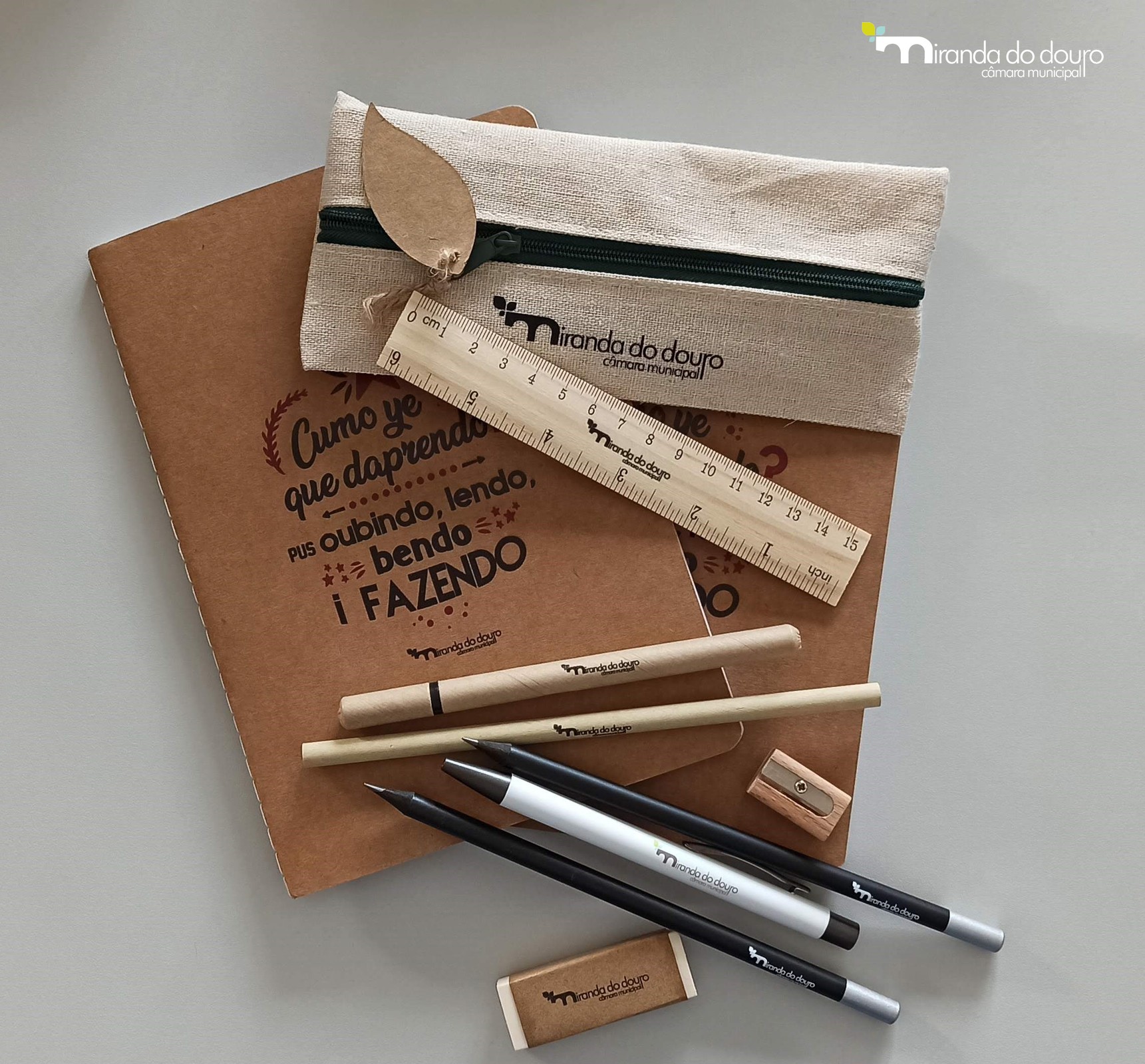 O Município de Miranda do Douro, considerando essencial apoiar os encarregados de educação neste início de ano letivo e ciente de que a pandemia aumentou as necessidades de muitas famílias, procedeu hoje à distribuição, pelas escolas, dos habituais livros de fichas e ainda ofereceu um estojo (com 3 lápis, 2 canetas, uma régua, uma afia e uma borracha) e dois cadernos a cada aluno do 1º ciclo do concelho. Será também oferecido a cada aluno do 2º e 3º ciclo e ensino secundário uma esferográfica touch.
