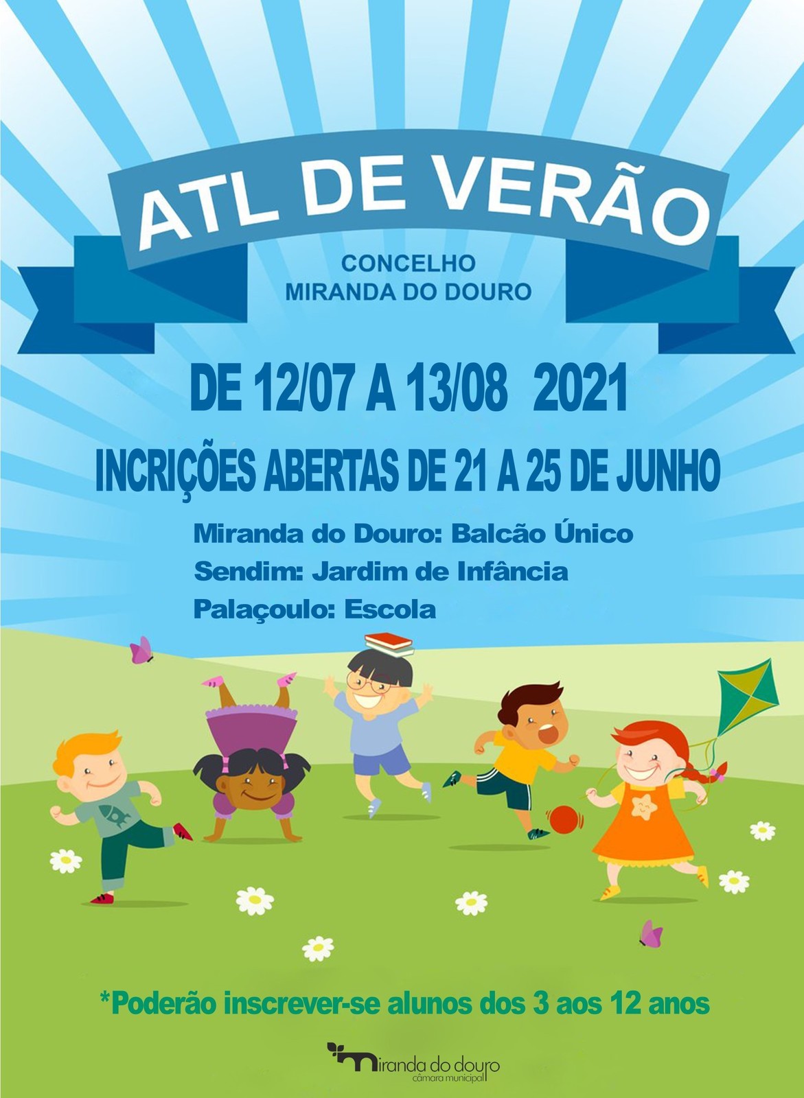 O Município de Miranda do Douro informa os encarregados de educação que as inscrições para o ATL de verão irão decorrer de 21 a 25 de junho, nos seguintes locais:
