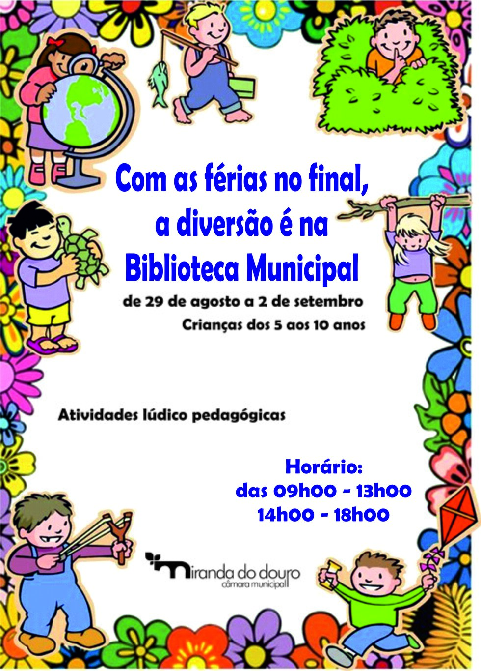 De 29 de agosto a 2 de setembro, a Biblioteca Municipal de Miranda do Douro recebecrianças dos 5 aos 10 anos, das 9h - 13h | 14h00-18h00.