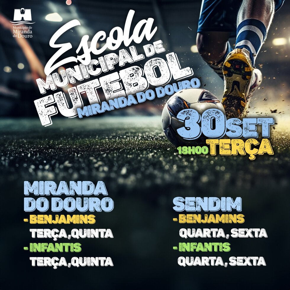 Chegou a tua hora de brilhar! Junta-te à Escola Municipal de Futebol/Futsal e faz parte da próxima geração de campeões. Os treinos começam já esta terça-feira, em Miranda do Douro e Sendim.