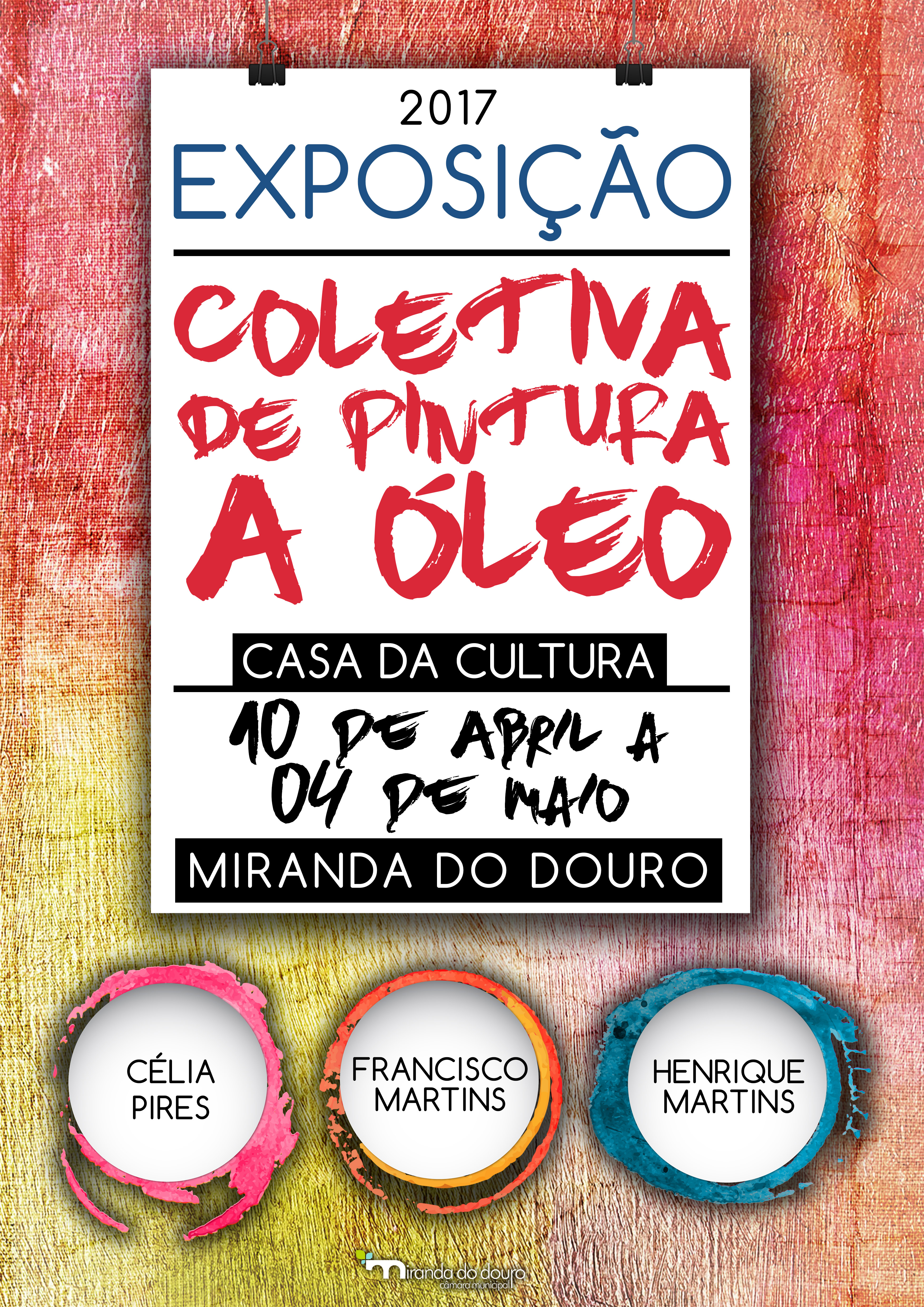 Vai estar patente de 10 de abril a 4 de maio na Casa da Cultura Mirandesa, a Exposição Coletiva de Pintura a Óleo da autoria de Célia Pires, Francisco Martins e Henrique Martins.