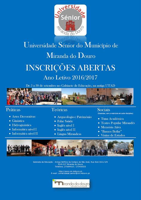 - Inscrições abertas para o ano letivo 2016/2017 da Universidade Sénior de Miranda do Douro
