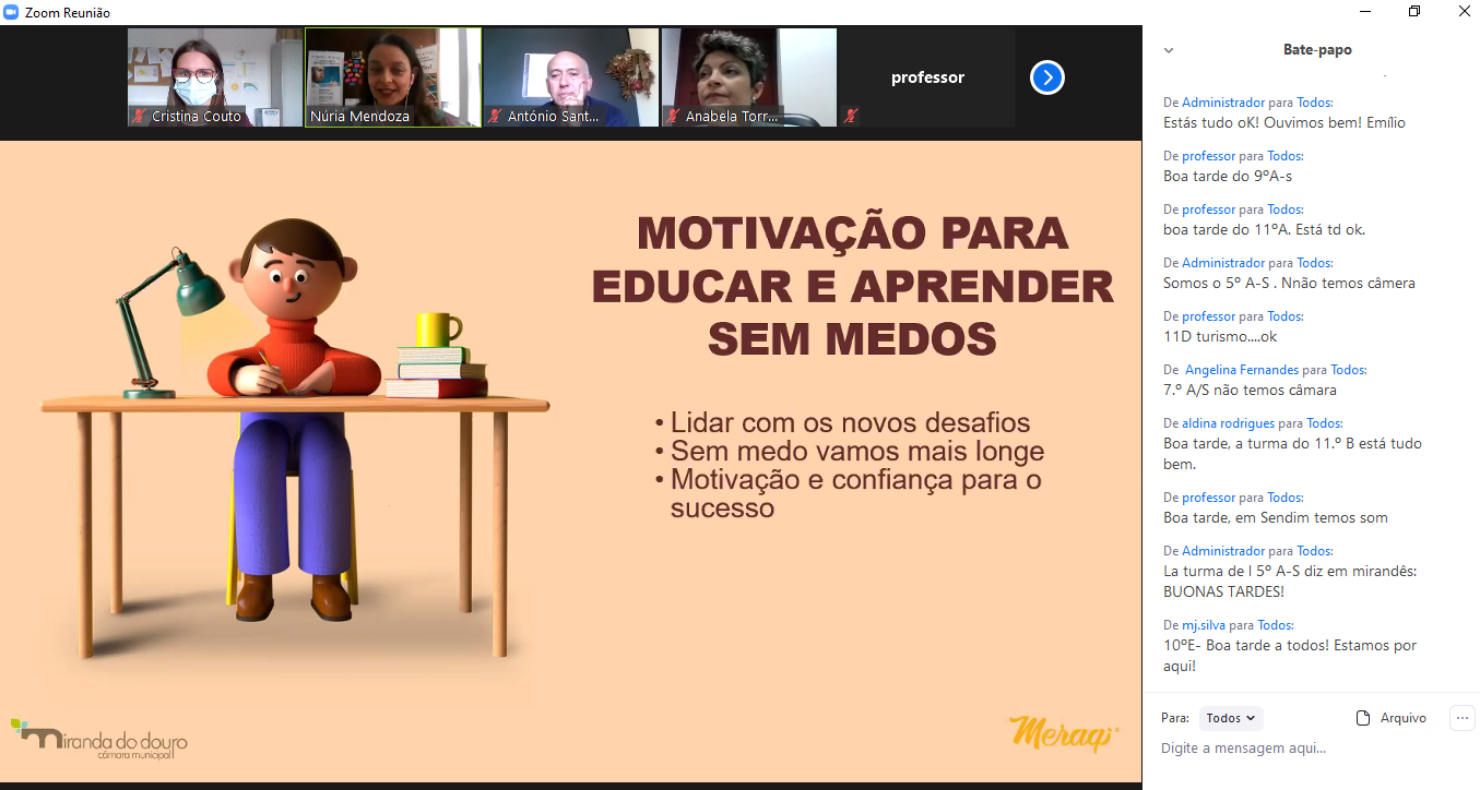 Esta palestra teve como objetivo estimular a motivação e a flexibilidade de professores e alunos para lidar com a nova realidade, aprender quais as atitudes a desenvolver para combater os medos, ser mais confiante face ao futuro assim como aumentar o foco e a responsabilidade para solucionar desafios.