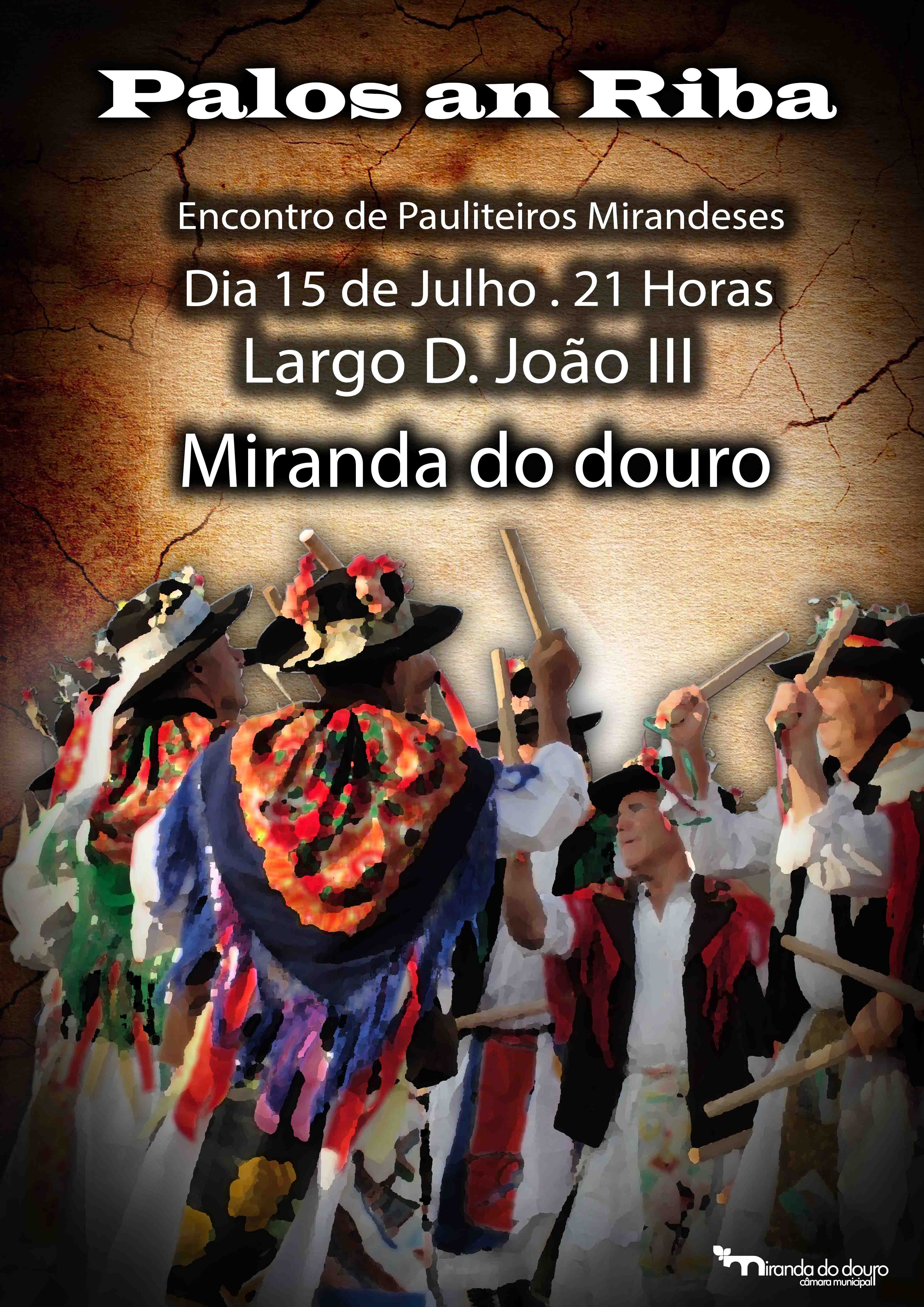 Miranda do Douro, prepara-se para receber o 1º Encontro de Pauliteiros Mirandeses “Palos an Riba”, no próximo dia 15 de julho, às 21 horas, no Largo D. João III. O objetivo deste evento passa por reunir o maior número de Pauliteiros do concelho de Miranda do Douro, ao mesmo tempo que se propõe a cada um, dos grupos, dançarem três lhaços, sendo um eles comum "L Mirandun".