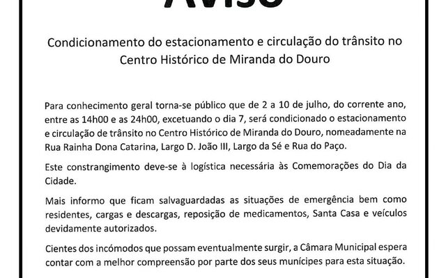 AVISO | Condicionamento do estacionamento e circulação do trânsito no Centro Histórico de ...
