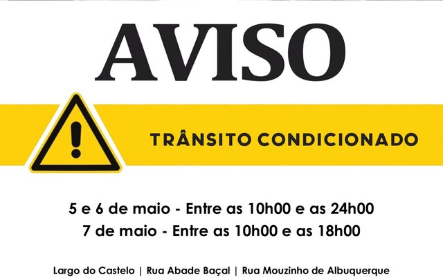 AVISO | Condicionamento do trânsito, dia 30 de abril e 1 de maio de 2023