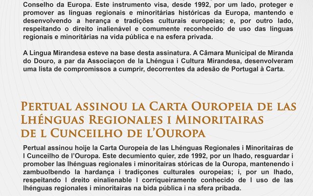 Cumpre-se hoje um ano da assinatura da Carta Europeia das Línguas Regionais e Minoritárias do ...