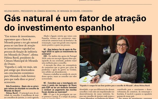 Imprensa | Entrevista da Presidente da Câmara Municipal de Miranda do Douro ao Jornal Vida Económica