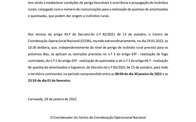 RESOLUÇÃO N.º 01/2022 DO CENTRO DE COORDENAÇÃO OPERACIONAL NACIONAL