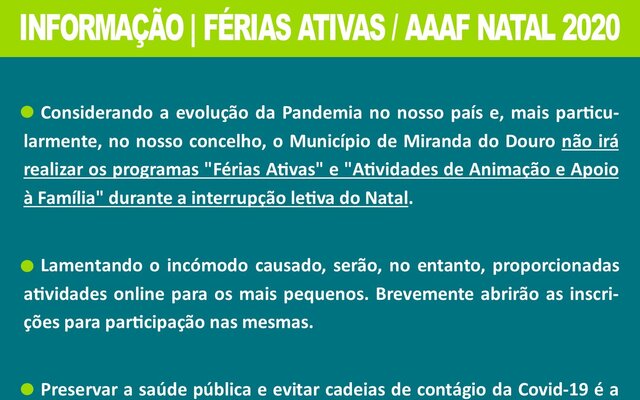 Informação | Férias Ativas / AAAF Natal 2020