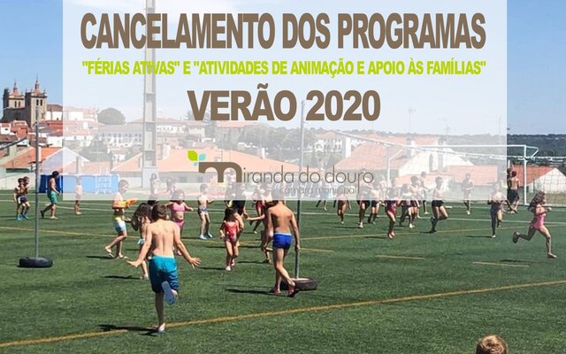 Cancelamento dos programas "Férias Ativas" e "Atividades de Animação e Apoio à Família"- Verão 2020