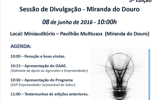 Apresentação da 5.ª Edição EDP Empreendedor Sustentável Sabor, dia 8 de junho em Miranda do Douro